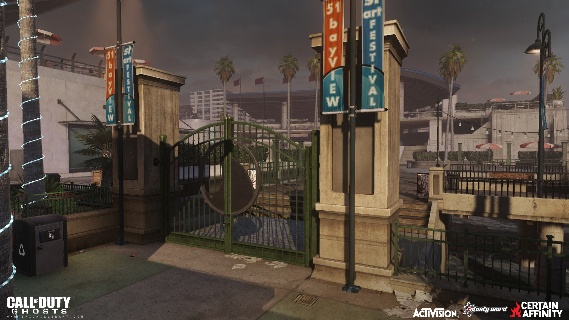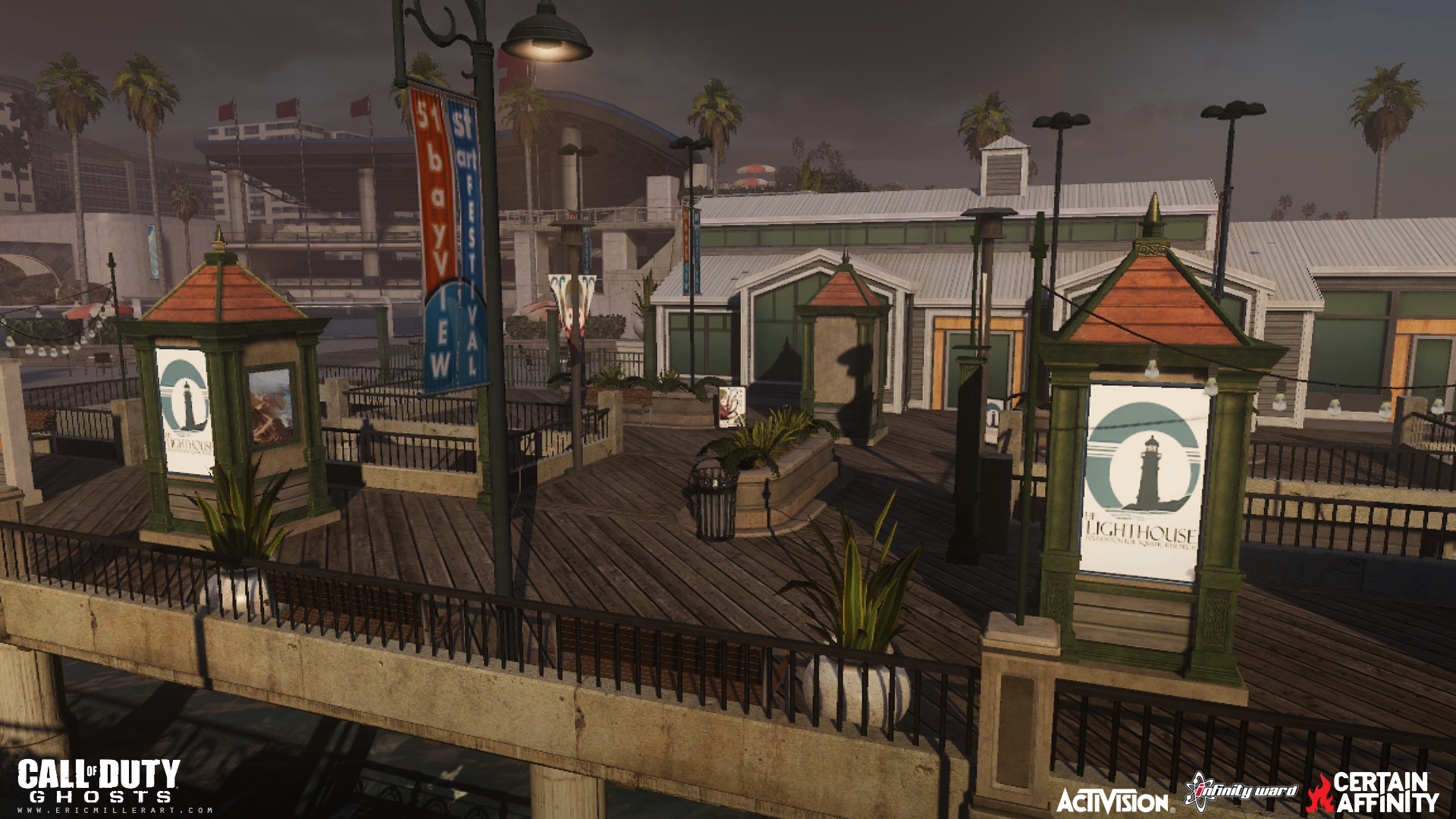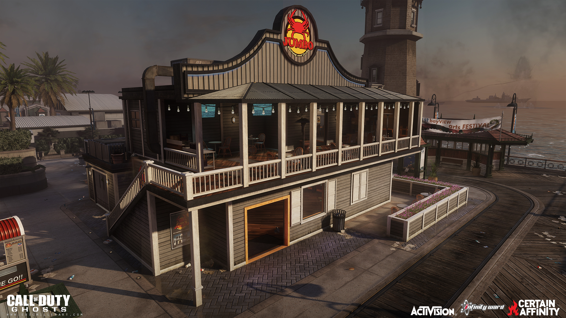 My role on Call of Duty: Ghosts was as an Environment Artist on 4 multiplayer maps. The maps I worked on were Bayview, Collision, Containment, and I also helped out on Behemoth (initial level art). My main work was world building, scene composition and set dressing, prop and structure creation (with bsp and patches), texture adjustments, some vista background work (outside of playspace the arena amphitheater and boardwalk), as well as polish work and bug fixing. This was a collaborative effort with several other artists and team members sharing responsibilities on each map. The production software I used were Activisions proprietary engine Radiant, Maya, and Photoshop.