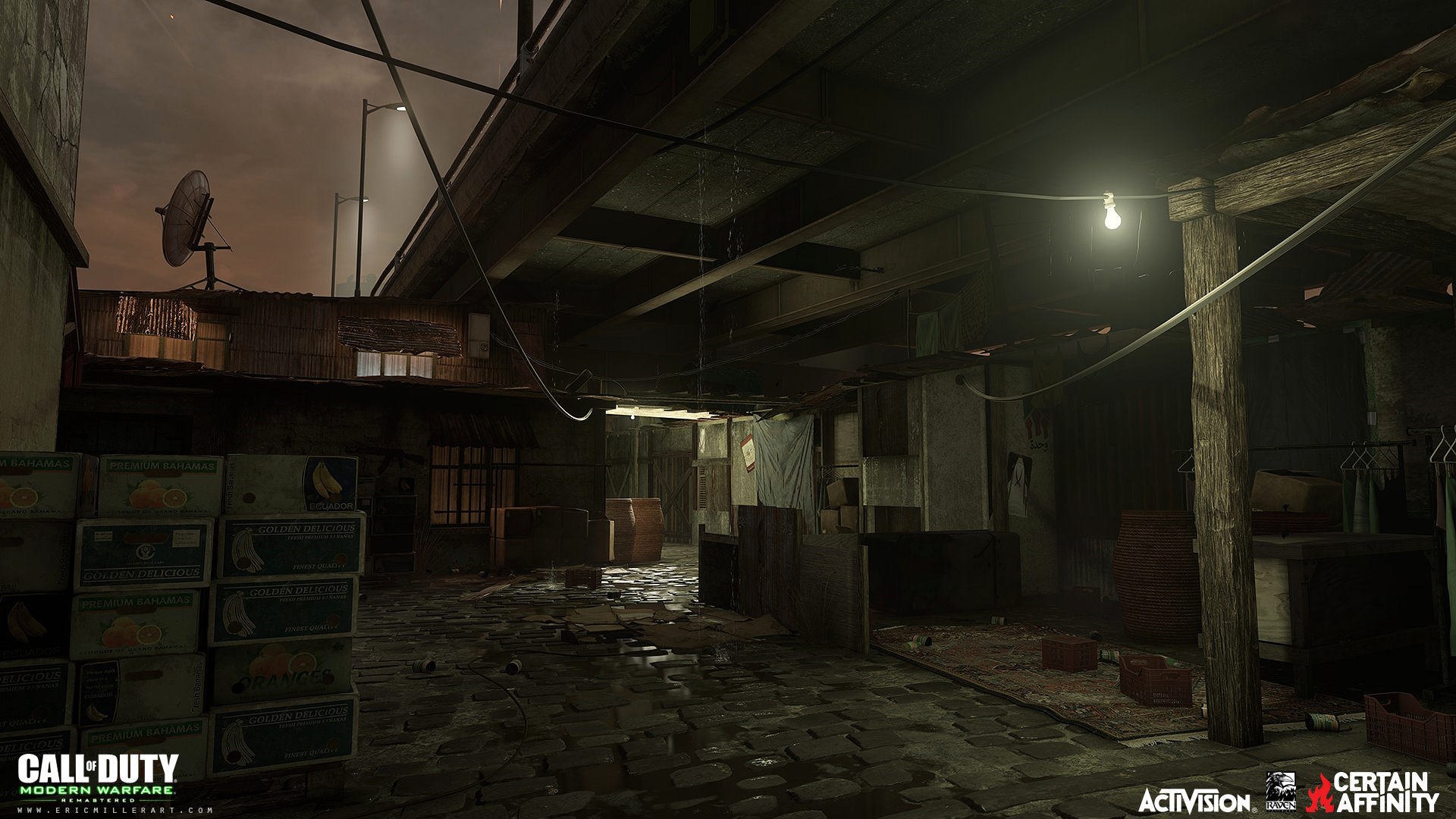 On Call of Duty Modern Warfare Remastered I was the Map Art Lead on the campaign maps Bog and Ultimatum. My key responsibilities were world building with bsp and patches using the Radiant editor on everything from buildings to roads and interiors and all manner of set dressing, following closely the blockout of the original map while pushing the visuals as far as we could in engine, helping to compose some of the skybox layout, as well as led a team of 3 other artists providing feedback and direction, pushing polish work through to map completion, helping sort out technical issues and map performance, and bug fixing.